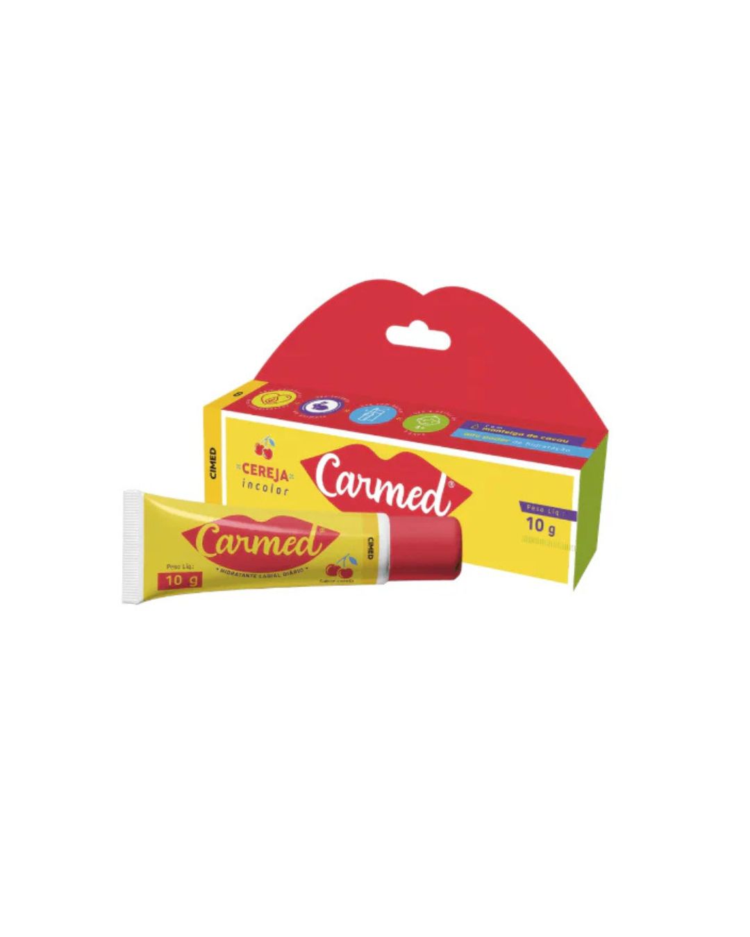 Carmed Cereja é um hidratante labial com aroma doce e frutado, ideal para manter os lábios macios e hidratados. Apresenta uma leve tonalidade avermelhada com brilho e não possui proteção solar.