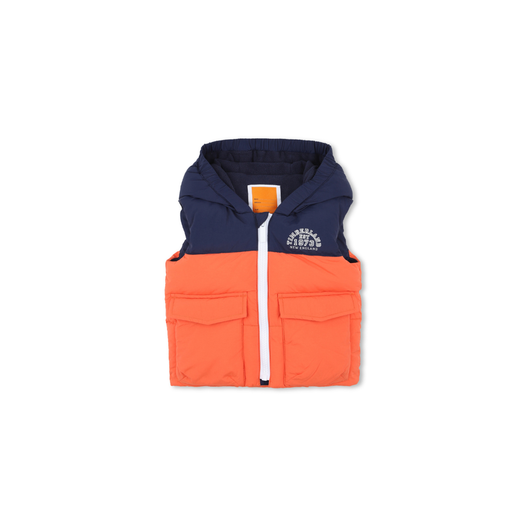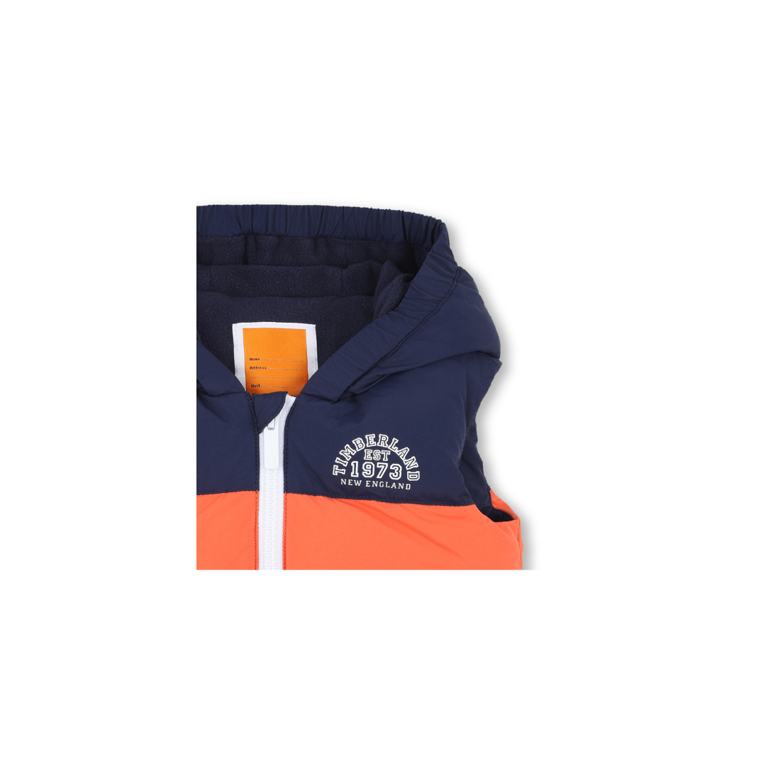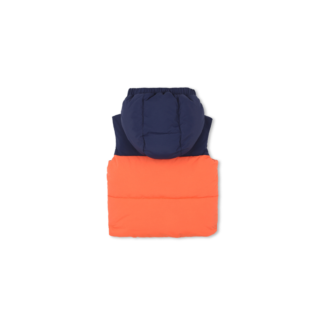 Um aliado perfeito para os dias frios e chuvosos. Este colete impermeável e acolchoado foi pensado para crianças pequenas, garantindo aquecimento sem perder a mobilidade que precisam para brincar à vontade. Com design bicolor – laranja de um lado e azul escuro –, traz versatilidade e estilo em apenas uma peça.