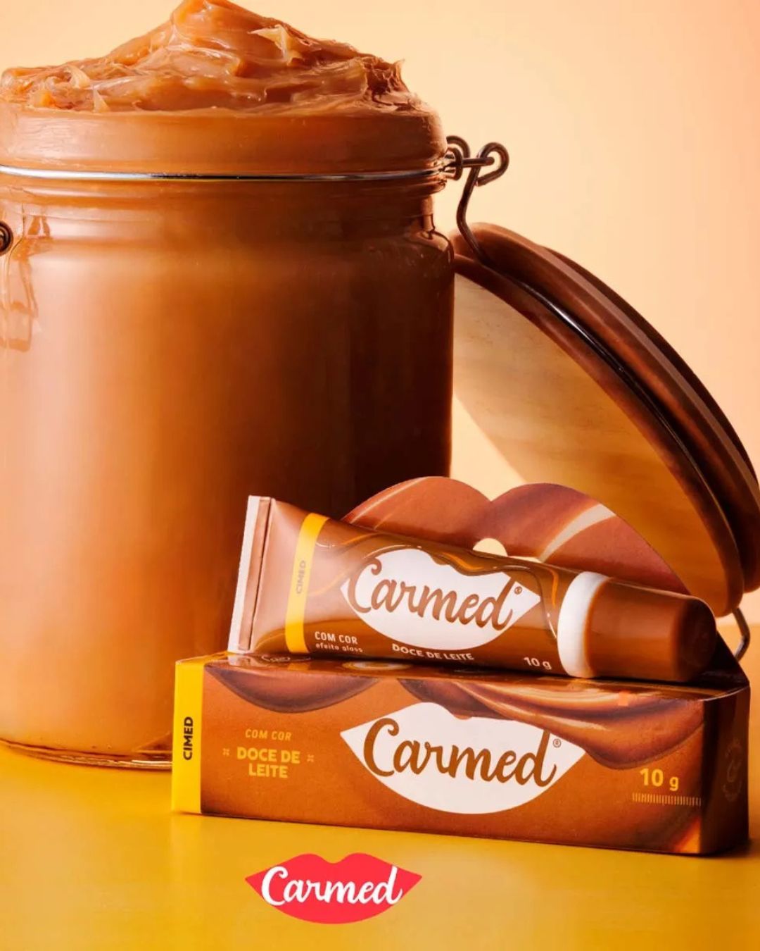 Carmed Doce de Leite é um hidratante labial com aroma cremoso e doce, que ajuda a manter os lábios nutridos e suaves. É incolor, com brilho, e não possui proteção solar.