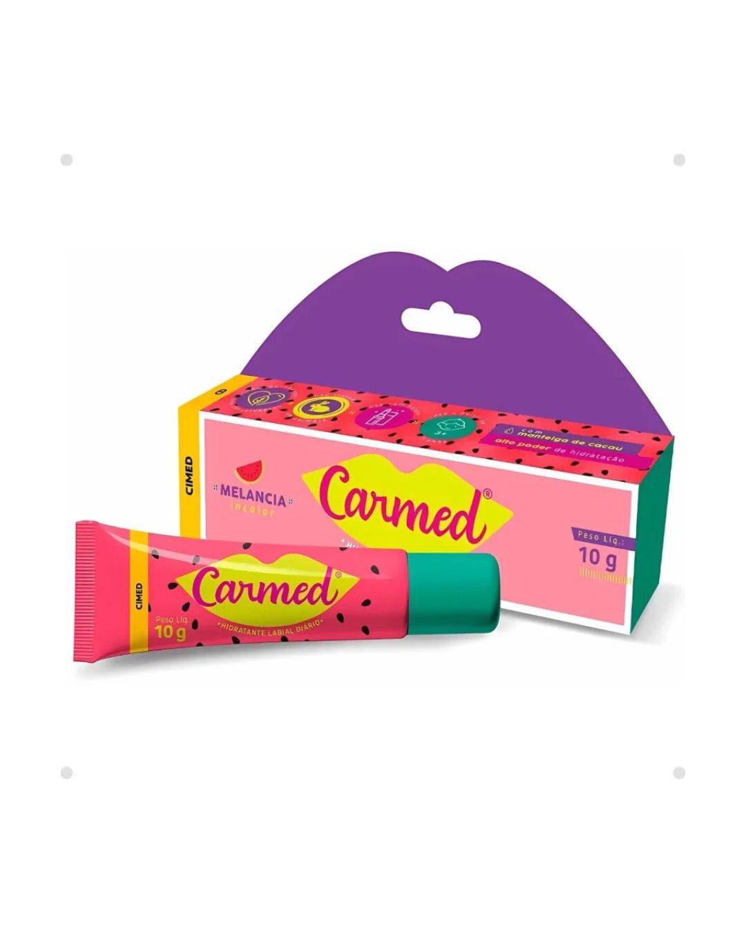 Carmed Melancia é um hidratante labial com aroma fresco e doce, ideal para manter os lábios hidratados e com aspeto saudável. Pode apresentar leve tonalidade rosada com brilho e não possui proteção solar.