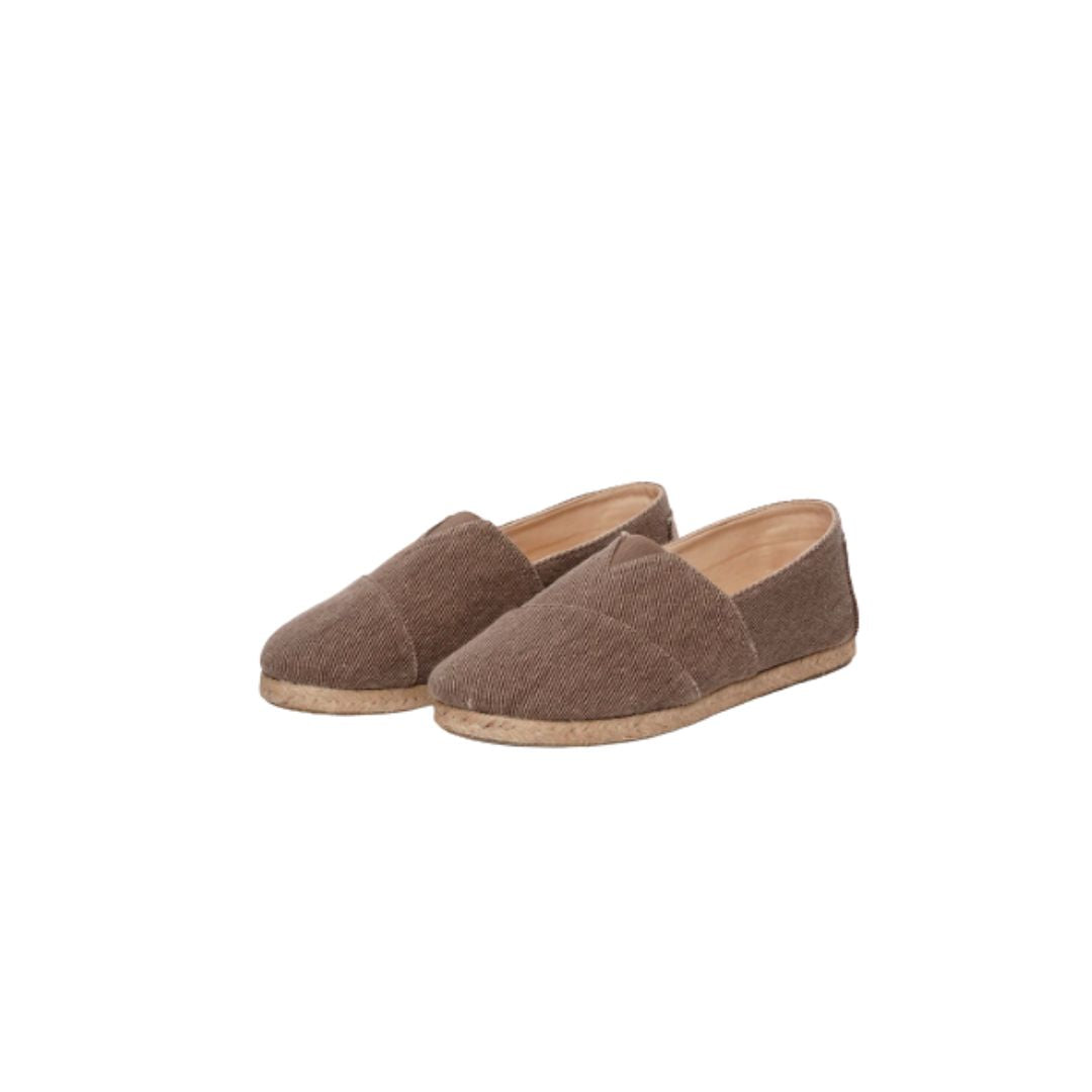 Parte superior de poliéster e algodão, sola de borracha termoplástica e com fios de corda e palmilha viscoelástica de microfibras.