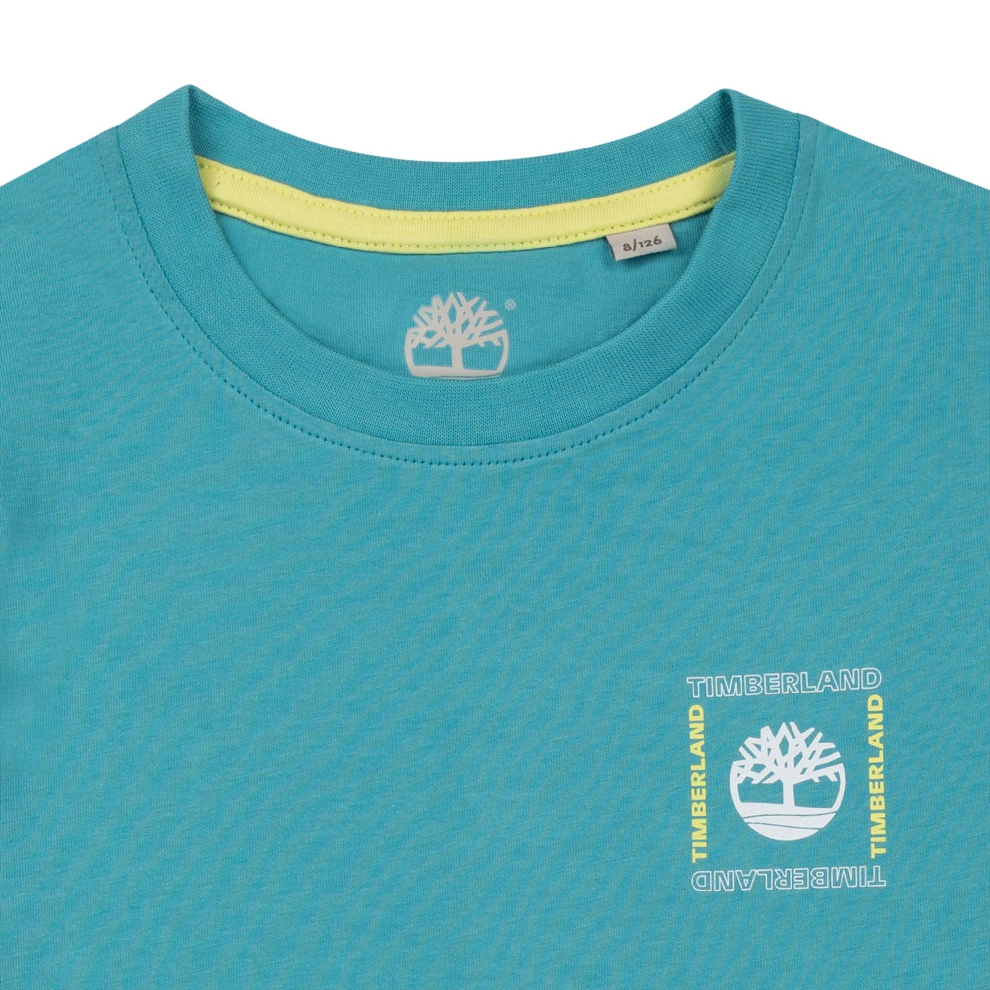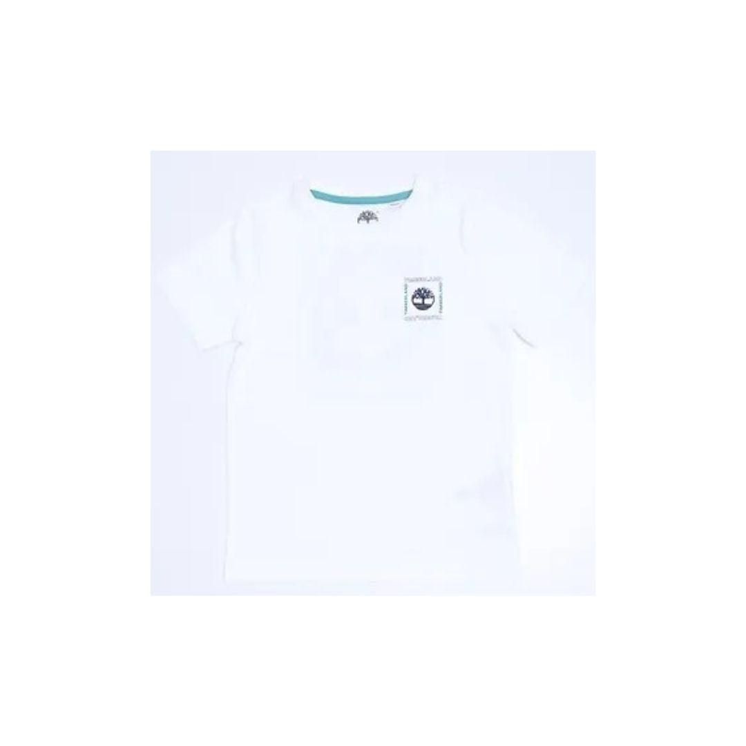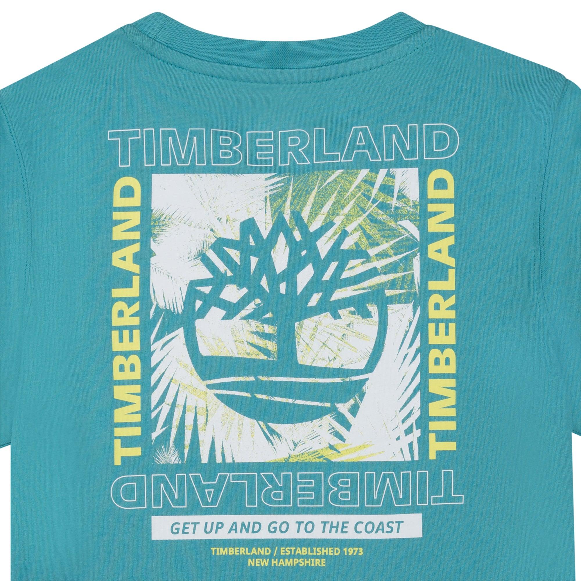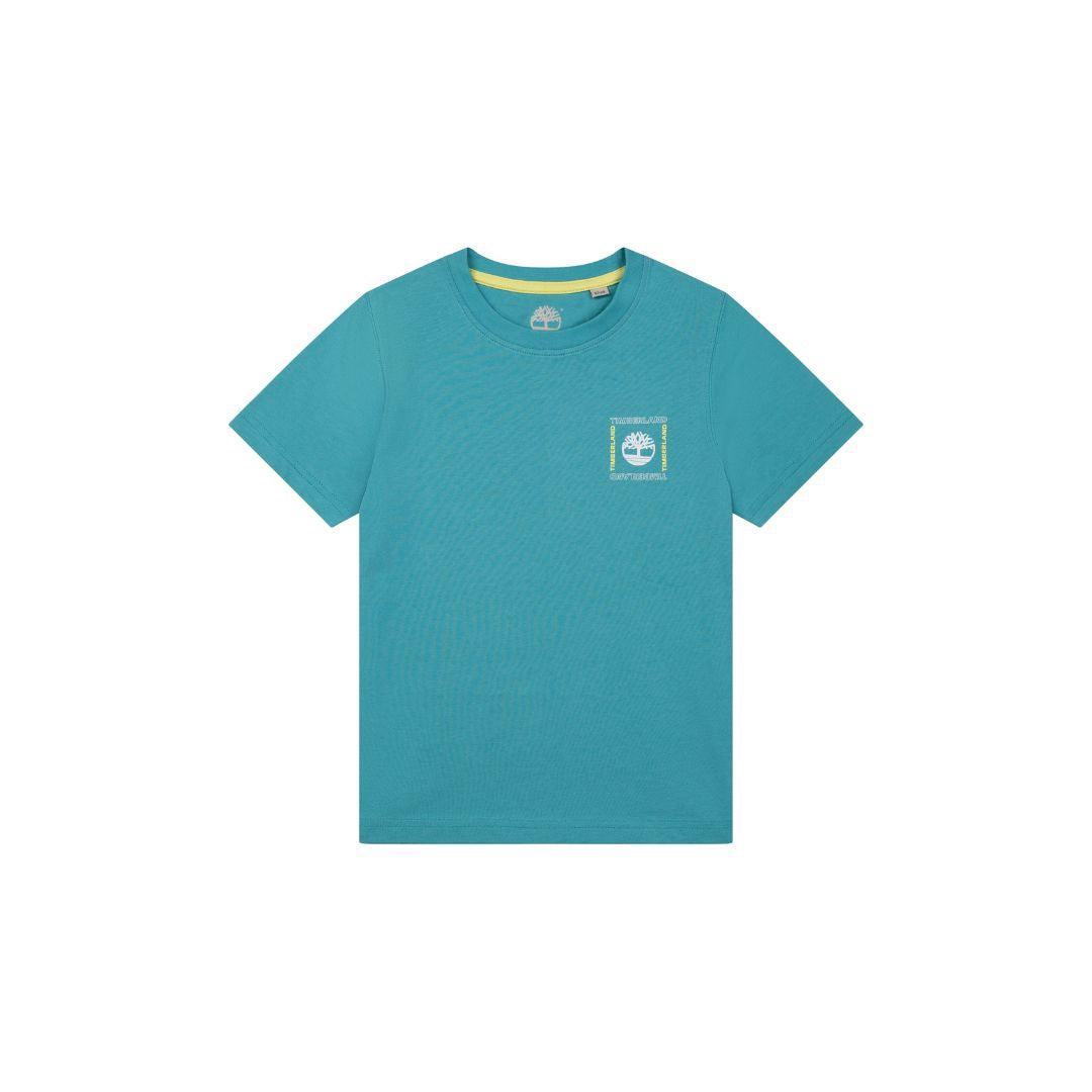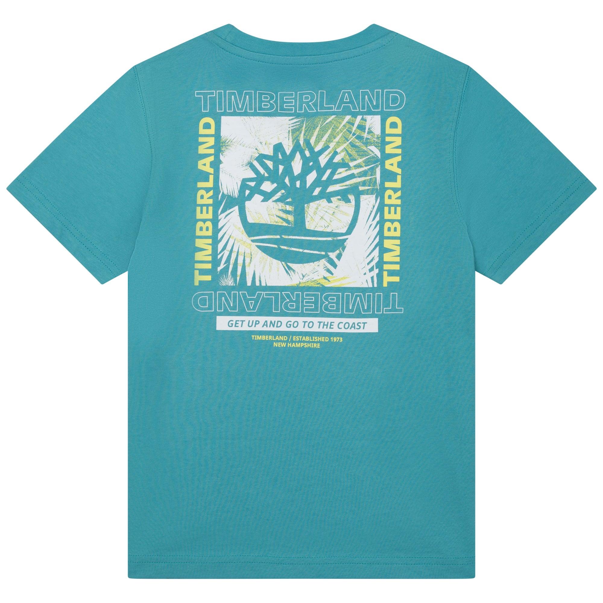 T-shirt de manga curta com gola redonda. Apresenta um mini logotipo na frente e um estampado Timberland nas costas.
